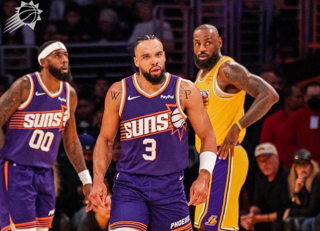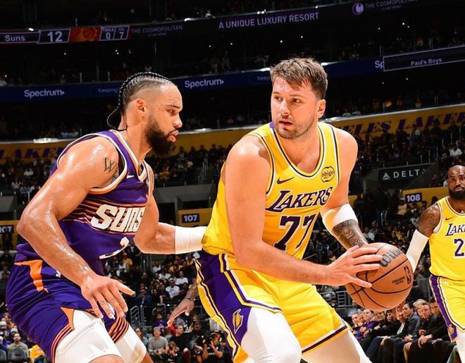 北京时间12月2日,NBA常规赛继续进行,湖人主场迎战太阳。此前湖人的战绩为15胜4负,排名西部第二;太阳战绩为12胜9负,排名西部第七。湖人最近这波7连胜,球队的打法和节奏特别鲜明,东契奇第一节火力全开,然后吸引对手夹击,里夫斯和老詹一个负责攻城拔寨,一个负责输送炮弹,内线还有效率超高的艾顿,球队打得越来越好。而且东契奇本赛季场均35分9篮板9助攻,里夫斯场均29分6篮板7助攻,已经成为联盟最强进攻二人组。这两人已经连续三场至少同时贡献30+,对手顾此失彼。